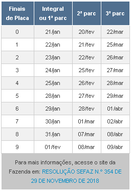 Veja abaixo o calendário de vencimentos do IPVA 2019: